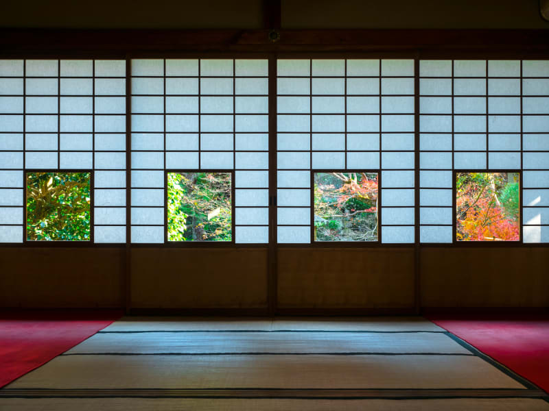 雲龍院の見どころといえば、庭園の美しい景色が楽しめる「悟りの窓」や「蓮華の窓」です。丸い形の悟りの窓は自分自身の心を映すとされ、訪れるたびに変化する景色が楽しめることで有名。蓮華の間にある4つの窓からは、季節ごとに紅葉や松、灯篭、椿などが見え、情緒たっぷりです。
