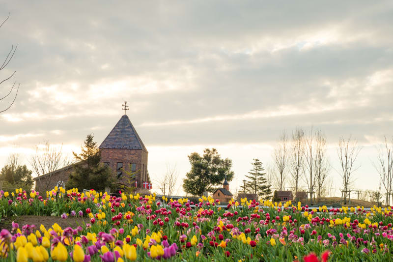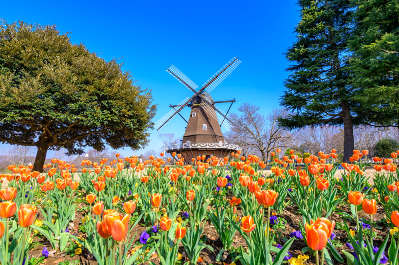 デンマークといえば風車も印象的。本場オーデンセ市の風車を手本にデンマークの職人が作った粉ひき風車は、羽1枚あたり約11.3mもの長さを誇りダイナミック。雰囲気ある風車と鮮やかなチューリップ、そして青空に負けないドレス姿で、笑顔も満開の写真を残しましょう。