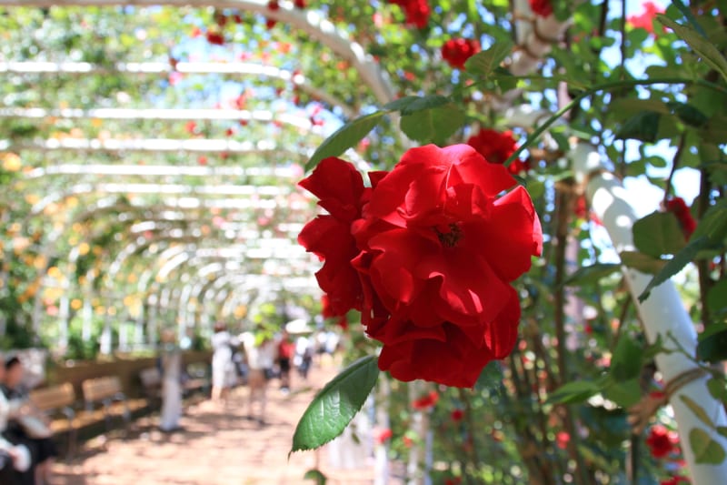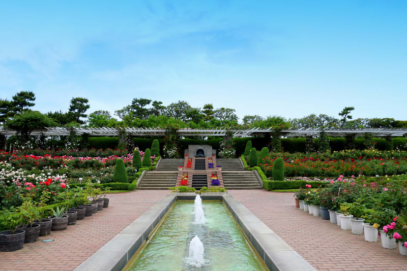 千葉でのロマンチックなフォトウェディングなら、世界各国のバラが咲き乱れる『谷津バラ園』がイチオシです。春の5月中旬から6月中旬、秋の10月中旬から11月中旬にかけて、園内の800種7500株ものバラが見頃を迎えます。スイセンやシャクナゲ、皇帝ダリアのほか、世界三大花木に数えられているジャカランダが木を覆うほどの花を咲かせることでも有名!