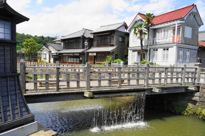 舟めぐりが行われる川にかかる橋も、絶好のフォトウェディングスポット。特に、佐原にゆかりのある伊能忠敬旧宅前にある「樋橋」が有名です。橋から川に向かって定期的に水が流れ落ちるため、ジャージャー橋と呼ばれています。歴史を感じる橋の上で、清らかな白無垢をまとって、お嫁入りさながらの写真を残してみては?