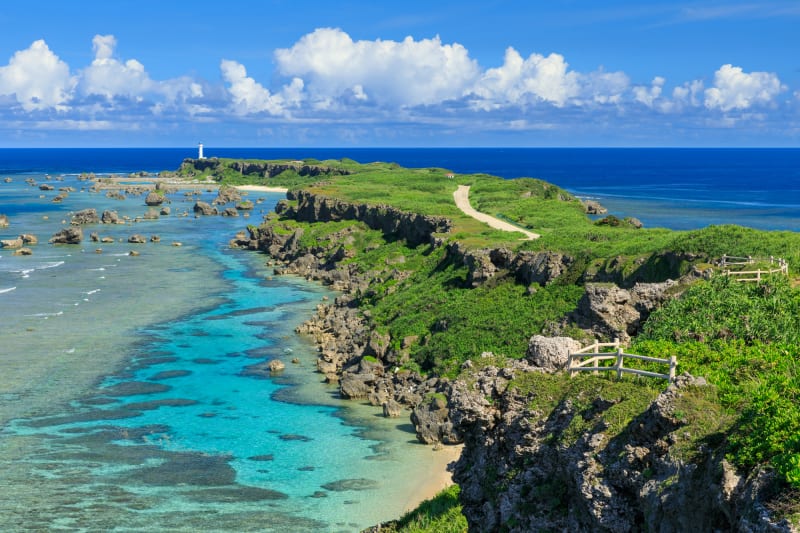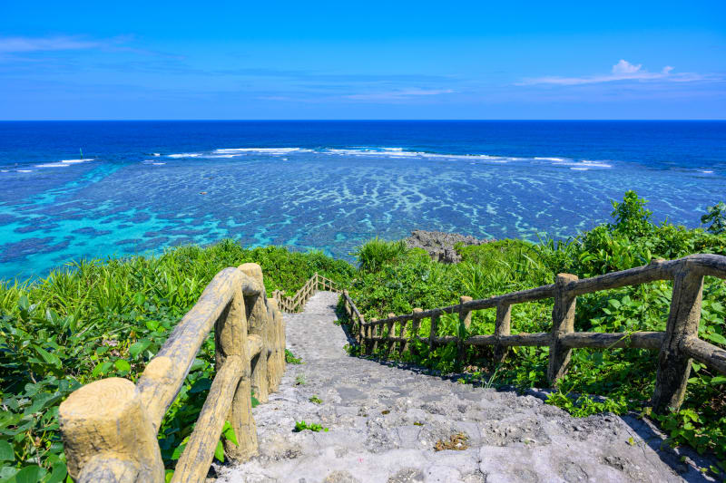 約2kmの岬は見渡す限りエメラルドグリーンの海が美しく広がります。自然の色だけが輝く岬では真っ白なウェディングドレスを着てのフォトウェディング撮影もおすすめ♪ 宮古島でも随一の絶景を堪能してみてくださいね。