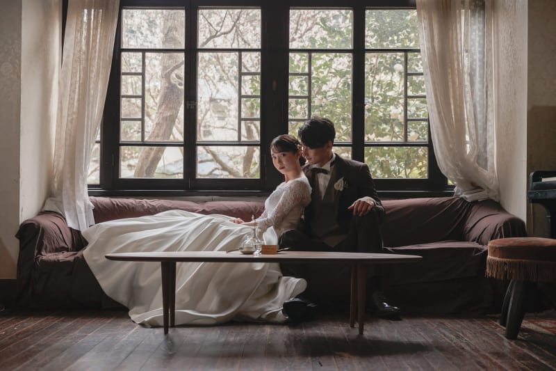 『西御門サローネ』は1926年に建てられた洋館風の建物で、かつて作家・里見弴氏が設計に関わり暮らした家屋として知られています。帝国ホテルの設計で知られる建築家フランク・ロイド・ライト氏の影響を受けた建物の内装は、市の重要景観建造物にも指定され、六角形の窓やサンルーム、大きな窓など、近代建築の趣を味わえます。