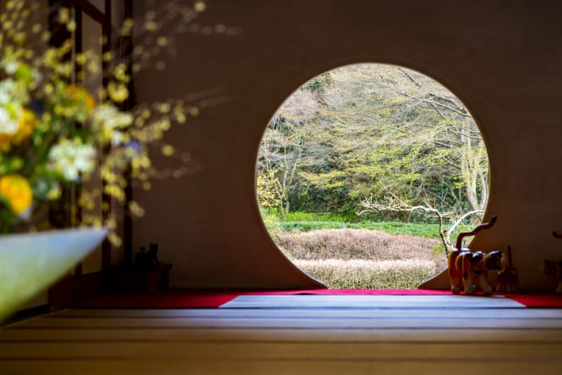 さらに、禅の心と真理の意味が込められた「悟りの窓」も必見! 手前には枯山水庭園、奥には本堂後庭園と2つの庭園が窓越しに眺められ、人気の撮影スポットにもなっていますよ。まるで額縁に入れられた絵を眺めているようなその姿に癒されるはずです。季節ごとに異なる景色を楽しんでみて♪