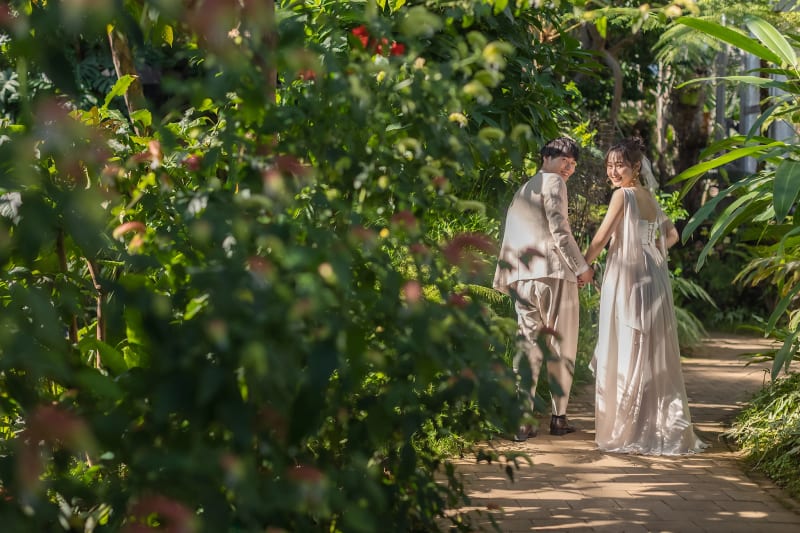 浅草から少し足を伸ばして、印象的なガラスドーム『夢の島亜熱帯植物園』へ。珍しい亜熱帯植物を出会えるスポットでは、迫力ある植物が生い茂りまるでジャングルのよう。ふたりだけの秘密基地かのような雰囲気は、新婚旅行・フォトウェディングにもピッタリです。