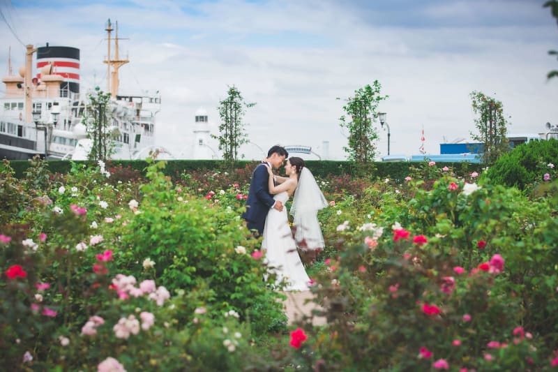 港町ムードを感じたいなら、横浜を代表するデートスポット『山下公園』は必見。船が泊まる港を背景にしつつ、バラに囲まれながらの撮影が叶います。山下公園内の「未来のバラ園」は例年春と秋が見頃を迎えるので、関東近郊で自然に囲まれた思い出を残したいなら要チェック!
