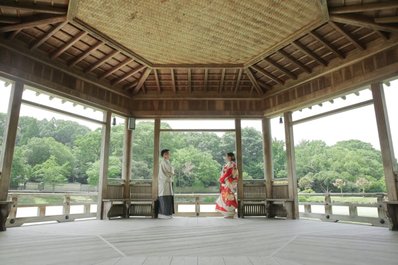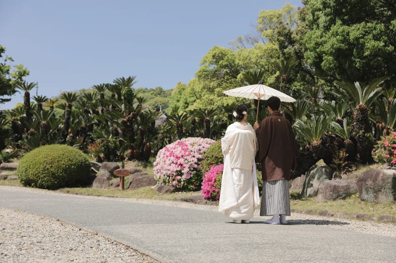 春のツツジや秋の紅葉も見事で、和装でのフォトウェディングにもおすすめ。季節感のあるショットを撮影できますよ。