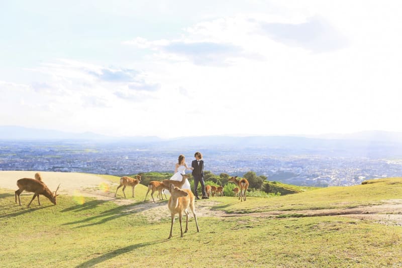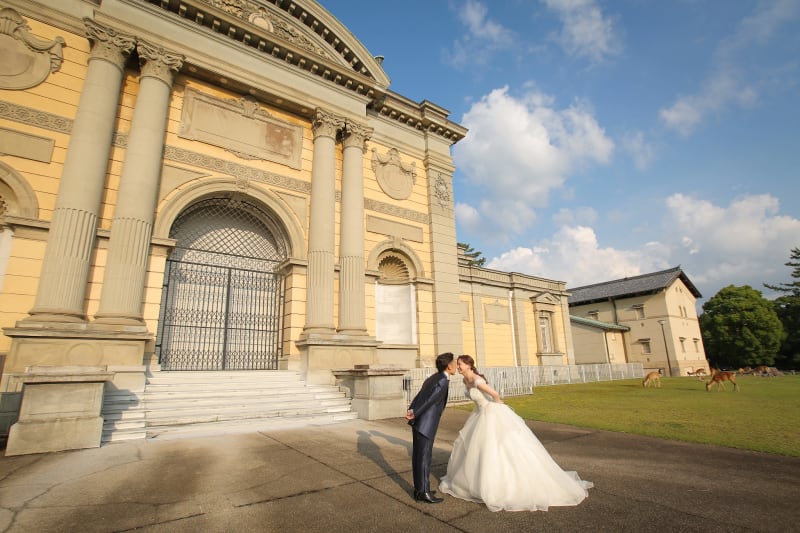 奈良を代表する観光地の『奈良公園』は、広い敷地内に東大寺や春日大社、奈良国立博物館などの観光スポットが点在し、新婚旅行にもフォトウェディングにも欠かせません。