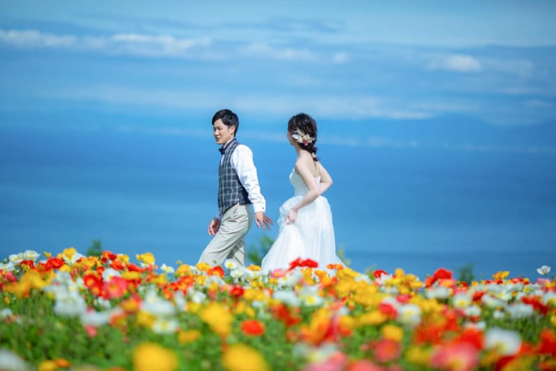 瀬戸内海に浮かぶ花の島・淡路島。ファンシーな花畑だけでなく、豊かな自然と穏やかな海も魅力的。兵庫県の都市部から離れているからこそ、時間がゆっくりと流れるひとときを過ごせる新婚旅行に。