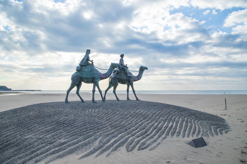 注目すべきはなんといっても、「月の砂漠」の歌詞に登場するラクダに乗った王子様とお姫様の像。砂漠を舞台にしたおとぎ話のようなフォトが撮影できる、御宿の人気撮影スポットです。