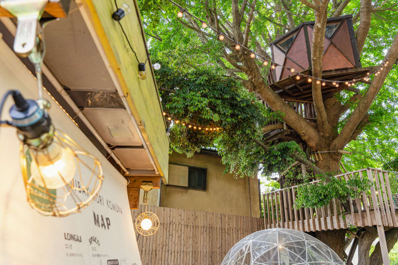 千葉市内にある千葉公園のすぐそば、森の中にある『椿森コムナ』は、2棟のツリーハウスやタイニーハウス(小屋)、キッチンカーなどが集まったコミュニティスペース。