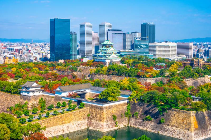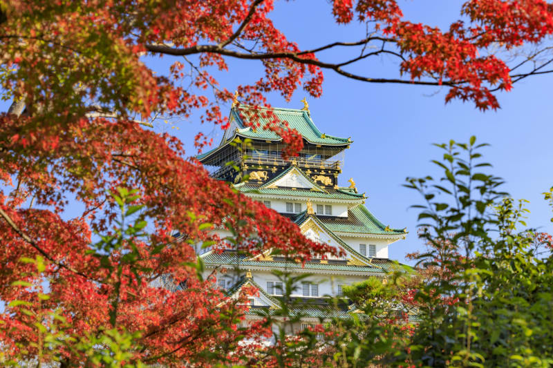 桜が有名な「大阪城公園」ですが、実は秋の紅葉も見ごたえ抜群! 桜の時期より混雑が少ない穴場のシーズンでもあります。秋は黄色に染まるイチョウ並木と大阪城のコラボレーションで大阪らしい景色が眺められますよ。