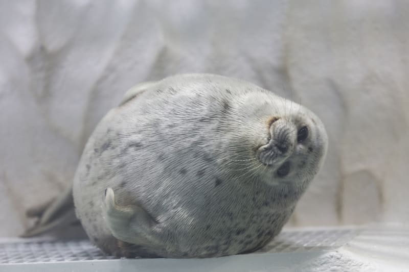 立ち泳ぎが愛らしい姿のワモンアザラシを覗いて癒されたり、大迫力で泳ぐジンベエザメに圧倒されたりと見どころがたくさん。歩き疲れたら館内のカフェから水槽を眺めつつ、まったり休憩するのも楽しみ方のひとつですよ!
