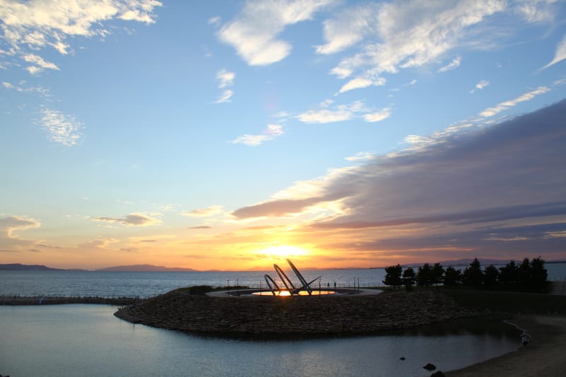 大人カップルにおすすめの時間帯が、サンセットタイムです。「日本の夕陽百選」にも認定されている夕景は、美しいの一言。近隣のヨットハーバーや四国・淡路島に落ちる夕日や、飛び立つ飛行機と夕日のコラボレーションは、最高の思い出になるはず♪