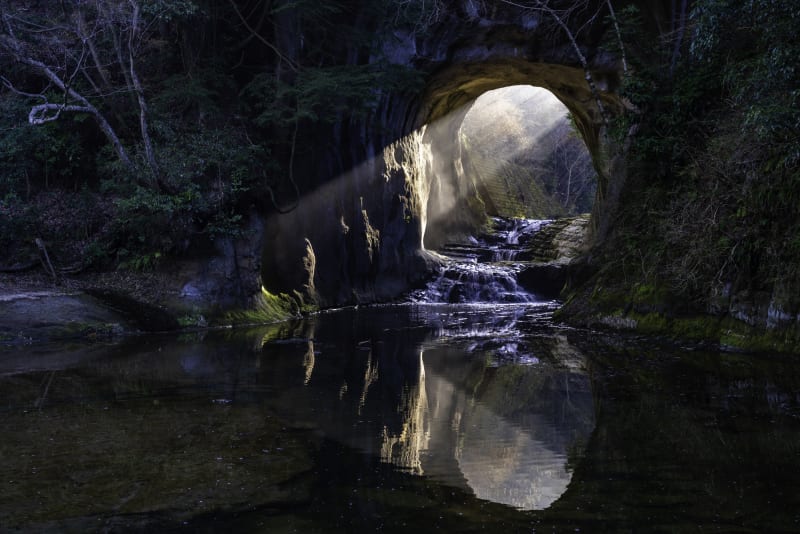 なんといっても『濃溝の滝・亀岩の洞窟』が最大のみどころ。亀岩の洞窟に流れる滝の光景が「スタジオジブリの世界のよう」ということで注目され、さらには、洞窟にさしこむ光が水面に反射してハート型に見えると話題。
