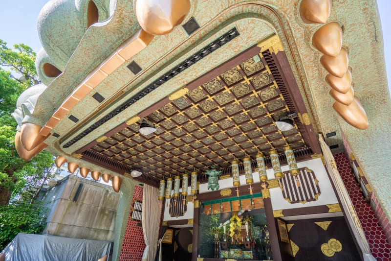 訪れるだけで圧倒されるパワースポットに行きたいなら、難波の繁華街から徒歩で行ける『難波八阪神社』がイチオシ。京都にある八坂神社を総本山に持ち、日本神話に登場する神様の代表格、素盞嗚尊(スサノヲノミコト)とその妻、奇稲田姫命(クシイナダヒメノミコト)とその子どもたちをお祀りする神社です。