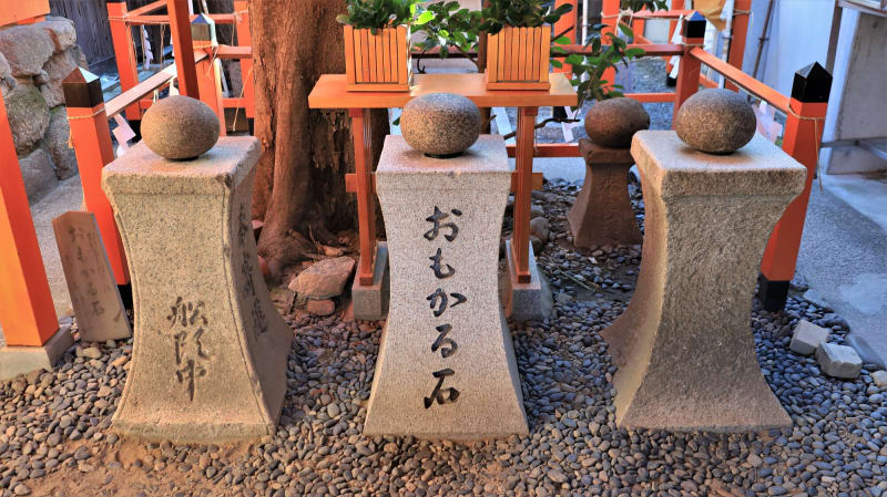 「五所御前」と一緒に訪ねておきたいのが、「おもかる石」のあるおいとしぼし社です。願い事が叶うかどうか教えてくれる霊石は、願い事をしながら持ち上げて、2回目のほうが軽いと感じたら成就するといわれています。霊石は3つあるので、3回まで挑戦可能!