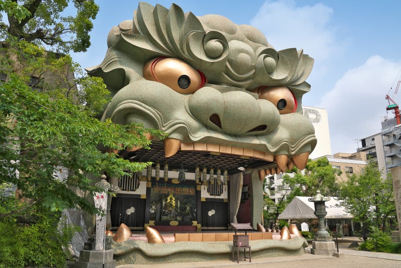 境内で注目すべきは、鳥居をくぐり正面にある「獅子殿」! 4階建てのビルと同じくらいの獅子が大きく口を開けて、邪気をのみ込み勝運を招くといわれています。就職や試験を控えている方や、金運アップを狙う方もぜひ参拝してみて。