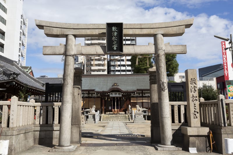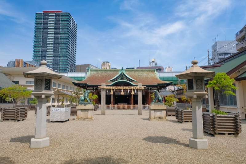 大国町駅から徒歩約5分の『敷津松之宮』なら、縁結びと金運アップのご利益を一度に授かれます! スサノオノミコトをお祀りする神社で、同じ境内には金運を司るという大国主命をお祀りする「大国主神社」もあります。