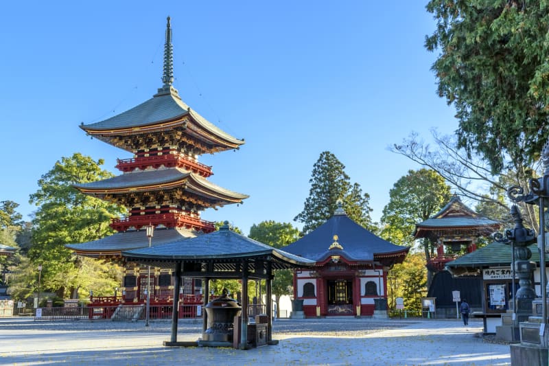 平安時代に開山され長い歴史を誇る『成田山新勝寺』。千葉県のみならず全国から年間1,000万人もの参詣者が訪れる寺院です。境内には御護摩祈祷を行う「大本堂」のほかに、重要文化財の「光明堂」「釈迦堂」、江戸時代に寄進された「出世稲荷」など、ご利益が期待できる御堂や、漆塗りの「三重塔」と見どころも多数。