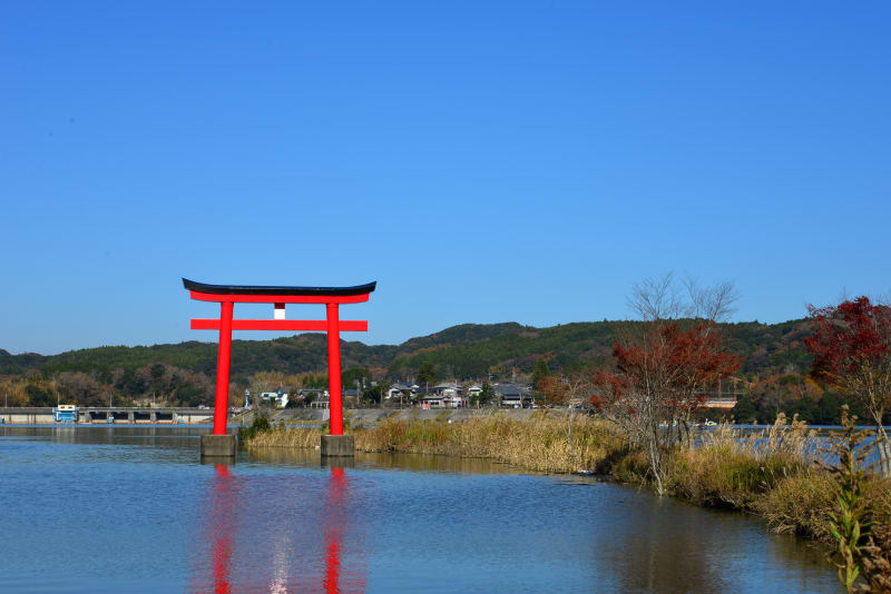 君津市にある『亀山ダム』は千葉県内最大のダム。ダム湖である『亀山湖』の周辺は、ハイキングやキャンプ場、ボート、グランピングなどのレジャー施設が充実した観光スポットで、近年では湖に浮かんでいるように見える「亀山水天宮」の朱色の鳥居がインスタ映えすると人気を集めています。