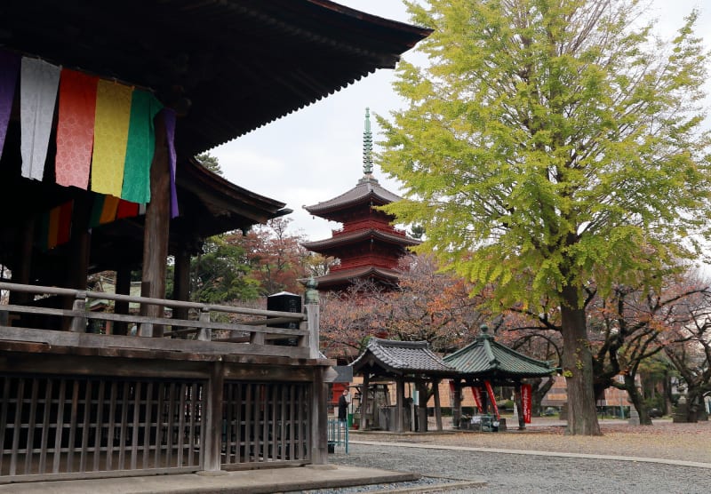 広い境内には、紅葉が楽しめるスポットがいくつかあります。日蓮宗祖・日蓮聖人の像をお祀りする「祖師堂」のそばにある大銀杏が黄金色に輝く姿は、一度は見ておきたいもの。