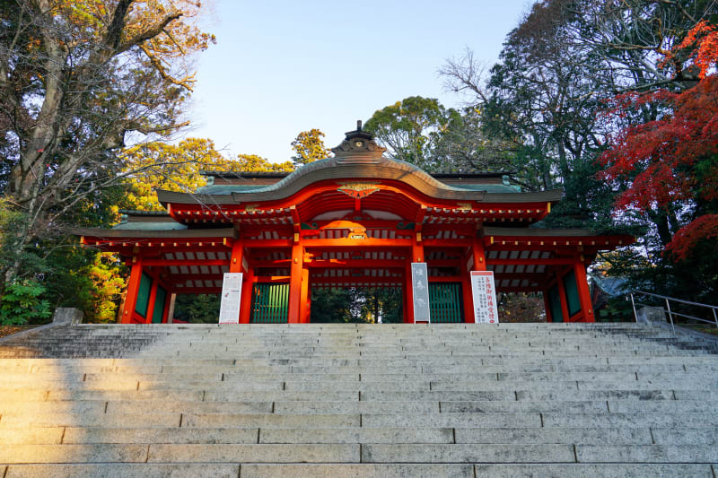 秋に佐原を訪れたなら、周辺の紅葉スポットにも合わせて立ち寄ってみて。車で20 分ほどの『香取神宮』は、国内に約400近くある香取神社の総本社でパワースポットとしても知られています。参道や境内では、イチョウや楓がきれいな色に染まる姿を鑑賞できます。