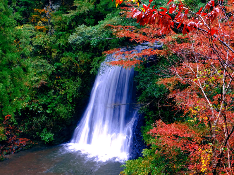 秋には、イチョウやモミジの紅葉が滝の周辺に彩り、清流と木々が織り成す、ここでしか見られない絶景が待っていますよ。