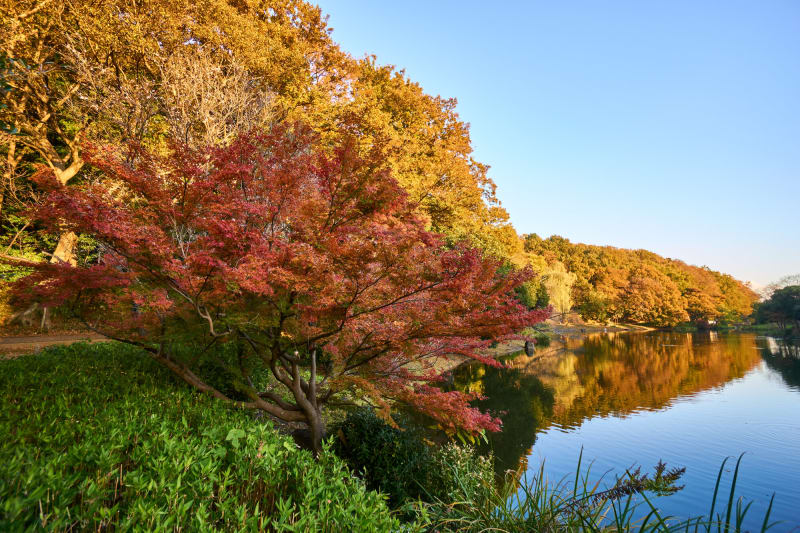 豊かな森林と緑に囲まれた、市川市の『じゅん菜池緑地』は、地元の人達の憩いの場。かつて、じゅん菜がたくさん生育していたことから「じゅん菜池」と呼ばれています。現在は、遊歩道も整備され、秋になると赤いモミジなどが池の周りを彩る紅葉の穴場に。