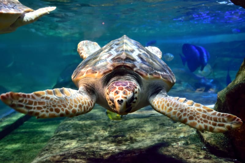 サンゴ環礁が広がる「トロピカルアイランド」では、色鮮やかな熱帯魚やウミガメなども観察できるので、リゾート気分を味わいながら海の生きものたちとふれあってみて。