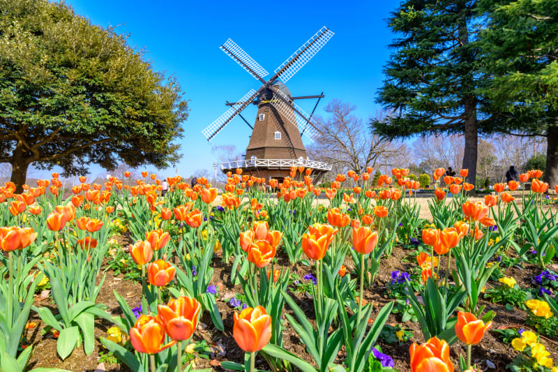 デンマークの童話作家ハンス・クリスチャン・アンデルセンにちなんで名付けられた『ふなばしアンデルセン公園』は、常時100種類5万株の花が咲き誇っています。