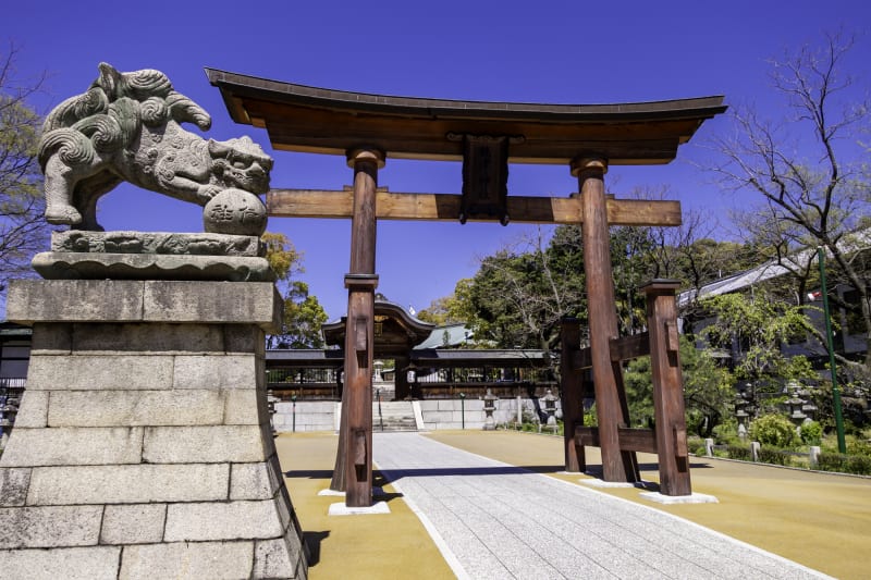 樹齢200年の国産檜で作られた鳥居が堂々とそびえ立つ『饒津神社(にぎつじんじゃ)』は、広島藩の藩祖である浅野家の歴代藩主を祀っています。饒津という名には、“広島の町が物や豊かな水の都となるように”という意味があるのだとか。
