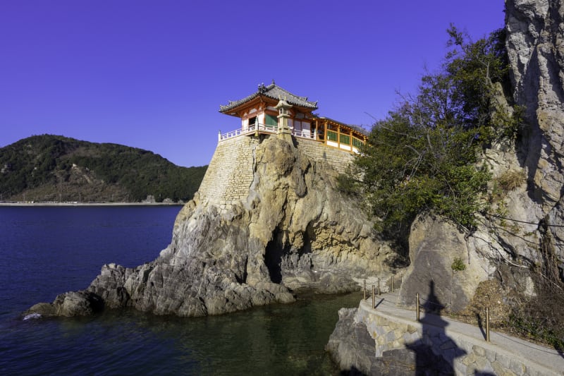 沼隈半島の南端に位置する「阿伏兎観音」の「観音堂」は、1570年に毛利元輝によって創建され、国の重要文化財にも指定されています。海面から約15メートルの断崖の上に建てられており、海へ迫り出すような朱塗りの観音堂からはエネルギーが感じられるはず。