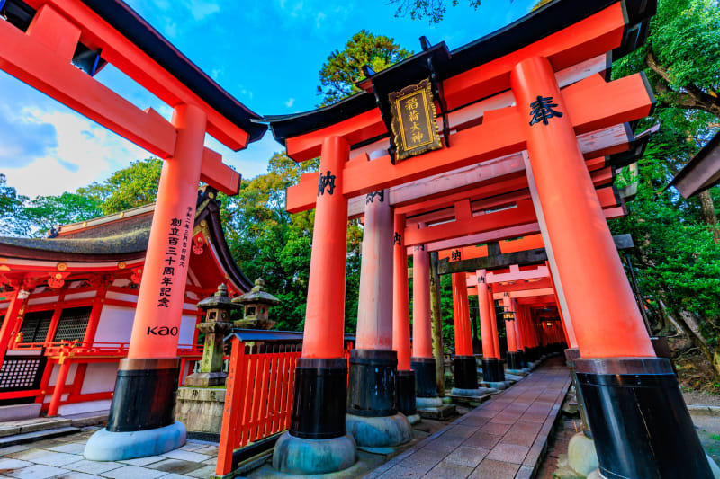 京都の定番人気観光地『伏見稲荷大社』は、全国に30,000社ほどあるとされる稲荷大社の総本宮。1,300年以上の歴史を持つ、京都屈指の歴史あるスポットです。御祭神の稲荷大神は五穀豊穣・家内安全・諸願成就などの神として広く信仰され、日本人だけでなく外国人観光客も多く訪れ、にぎわいを見せています。