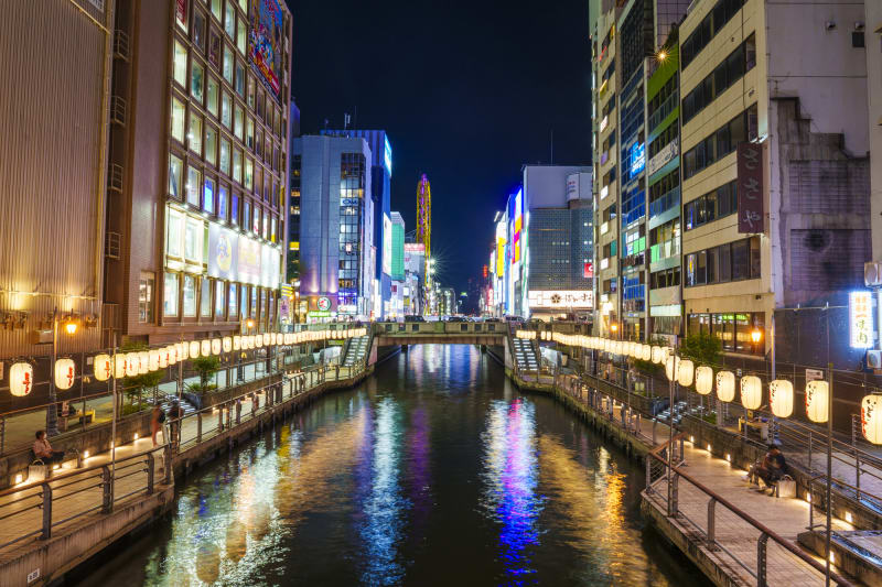 2023年には11月25日と11月26日の2日間で「道頓堀リバーフェスティバル」を開催。南海難波駅の正面に整備された「なんば広場」のお披露目イベントで、道頓堀川も会場のひとつになり、川沿いに赤い提灯がずらりと飾られました。冬ならではの道頓堀の楽しみ方を見つけてみて♪