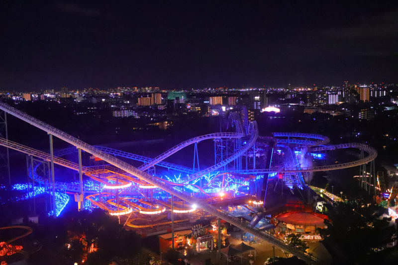また、ひらパーの冬のイベントは11月からの「光の遊園地」も見どころ。2023年には規模を拡大して、7つのイルミネーションエリアと9つのサブエリアが設けられました。光と音のショーが開催されたり、カラフルなランタンを夜空に浮かべたり、光り輝くナイトアトラクションとロマンチックな空間演出も素敵です。