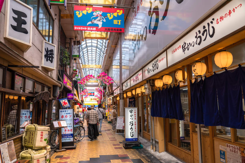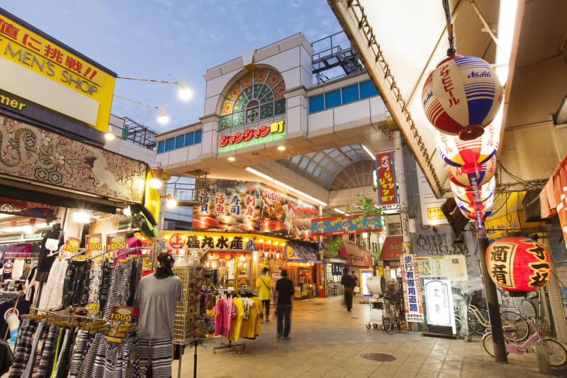 大阪で食べ歩きデートをするなら、ディープな浪速地区にある『南陽通商店街』がおすすめ。戦前、お店の呼び込みの際に、三味線をジャンジャンとかき鳴らしていたことから「ジャンジャン横丁」の名で親しまれています。