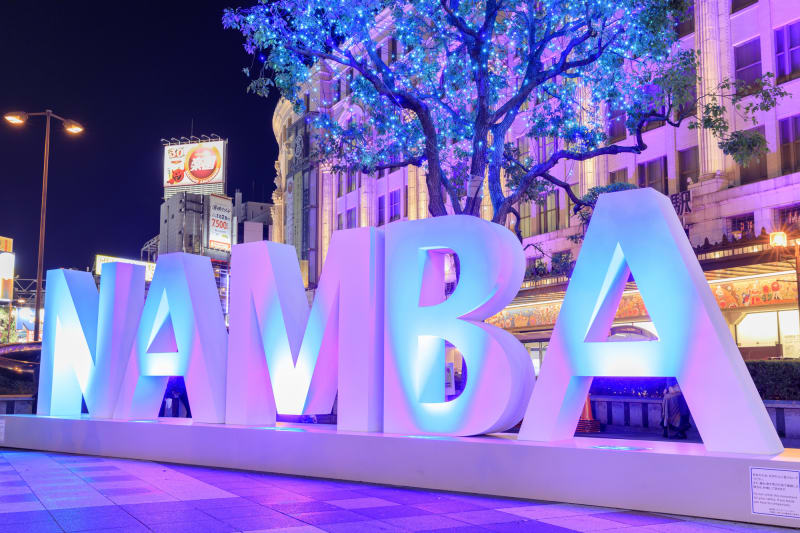 大阪・ミナミの観光ついでに寄っておきたいのが、南海電鉄・なんば駅前にある『NAMBAモニュメント』。2021年「御堂筋イルミネーション」の開催の際に、駅前の一角にフォトスポットとして誕生しました。