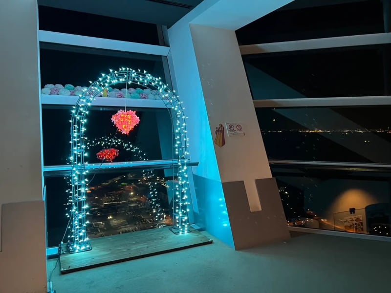 クリスマスシーズンには、クリスマスツリーとフォトコーナーも登場。フロア一帯がイルミネーションとレーザーの光に照らされ、ファンタジックな雰囲気に包まれます。窓の外の夜景を含め、数々の光の競演を堪能してみて。2名用の入場券とドリンク、アイスクリームがセットになったクリスマスペアチケットの販売もありますよ。