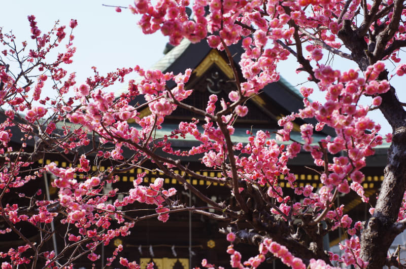 大阪府天満宮は、学問の神様として知られる菅原道真ゆかりのスポット。境内には道真が愛したといわれる梅の木を複数植えており、その梅が見ごろを迎える例年、2月から3月にかけては冬の恒例行事「てんま天神梅まつり」が開催されます。