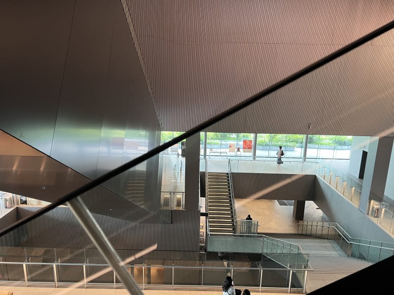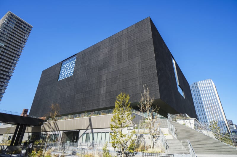 大阪中之島美術館は、中之島エリアのシンボル的スポット。黒い箱のような外観が印象的で、館内は黒や白、シルバーを基調としたスタイリッシュな空間が広がります。