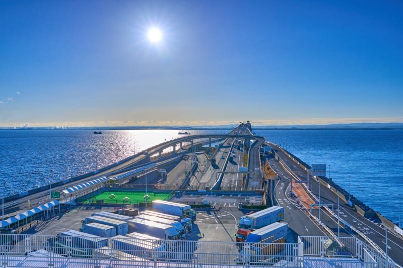 全長650mの木更津人工島として、360度を海に囲まれている「海ほたるパーキングエリア」。海にたたずむ5階建ての建物内には、駐車場のほか飲食店やお土産屋さんなどの営業施設が充実。ドライブデートにおすすめの観光スポットです。