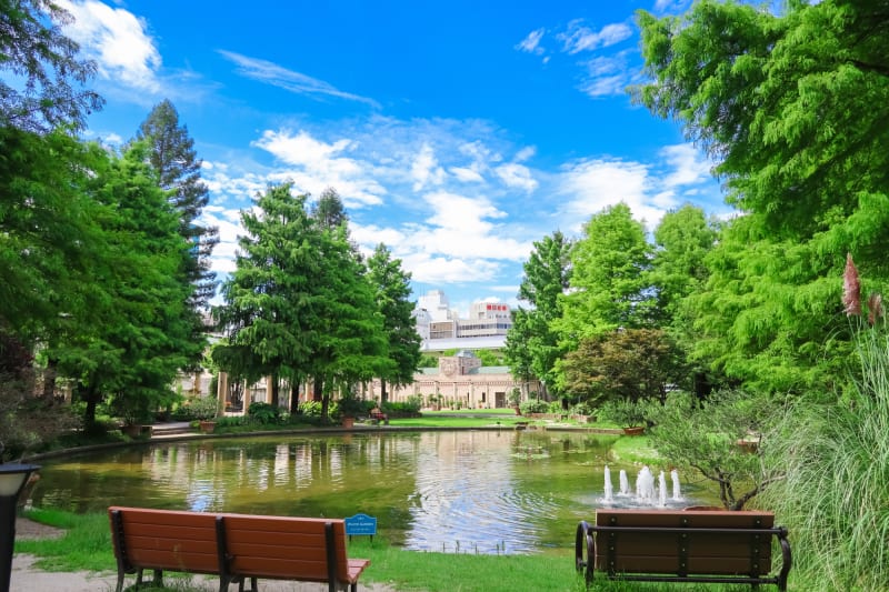 園内には、広大な芝生広場や水遊び場、全長5.1kmのサイクリングコースなど、自然と触れ合えるスポットがたくさん。さらに、アイススケート場や大観覧車などさまざまなアクティビティも充実しています。アイススケート場は通年オープンしており、プロのアイスショーが開催されることも。