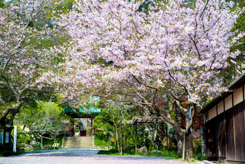 春にはカイドウ、初夏には山紫陽花と四季折々の花を楽しめるのが魅力。とくに、鎌倉市の天然記念物にも指定されているカイドウは、樹齢150年を超えているものもみられ、名所になっています。