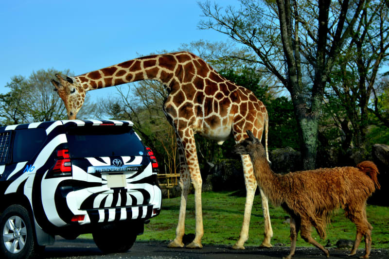 園内は、マイカーや園内周遊バスに乗り動物たちの様子を見学できる「サファリゾーン」と、徒歩で見学する「ふれあいゾーン」があります。どちらも動物たちを間近に見学できるのが魅力。