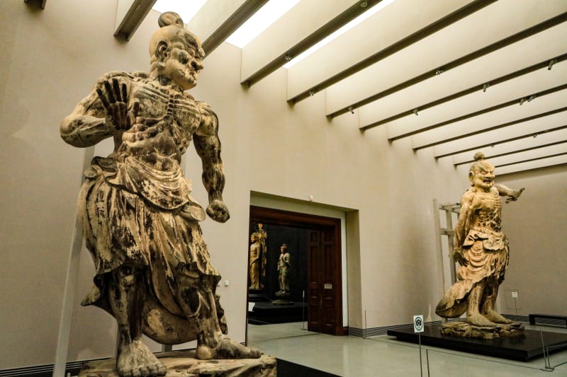 奈良国立博物館の展示の魅力といえば、国宝や重要文化財に指定された金剛力士立像などの仏像作品。古代中国の青銅器や日本の古墳から出土した埴輪や美術品の展示もあります。なら仏像館、青銅器館など施設が分かれているので、お目当てを探しやすいのも嬉しい!