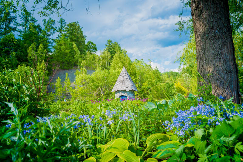 上野ファームは、花を眺めるだけでなくフォトスポットもたくさん。可愛い妖精やカラフルなベンチ、秘密の抜け道のようなスポットもあり、おとぎ話の世界に迷い込んだよう。自然豊かな空間で鳥のさえずりや風の音に包まれながら記念の一枚を撮影してみて。