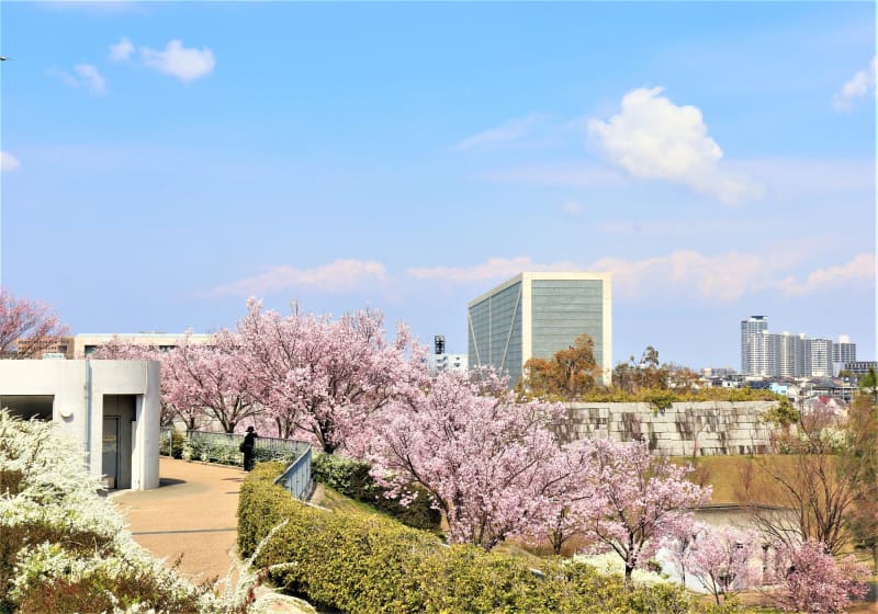 1941年に服部緑地、鶴見緑地、久宝寺緑地とともに四大緑地として計画された『大泉緑地 桜広場』。大泉池を中心にかきつばた園やふれあいの庭、大芝生広場、ひつじ広場など、都会にいながら豊かな自然を満喫できるスポットが充実しています。