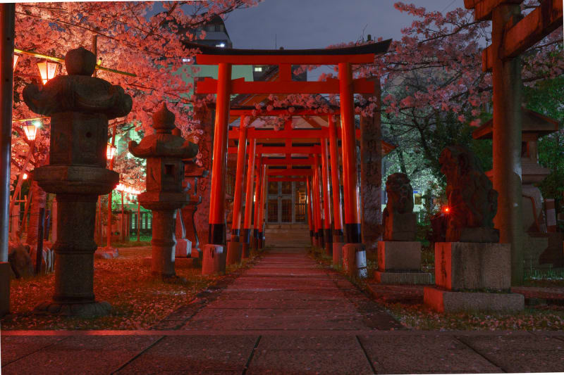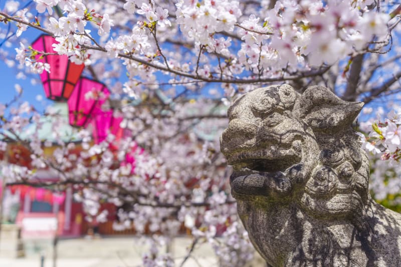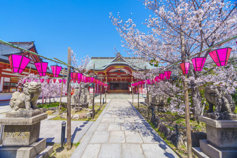 神社の境内はしだれ桜が見事で、多くの花見客で、にぎわいをみせます。西堀江駅より徒歩3分と好立地なので気軽に立ち寄れるのもうれしいポイントです。