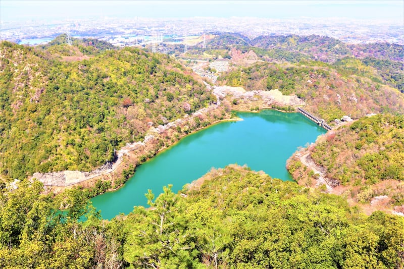 「大阪みどりの百選」「水源の森百選」に選定されるほど自然豊かな永楽ダムは、桜の名所としても有名。ダムの周囲は約2kmのハイキングコースになっており、約1,000本の桜を横目に散策できます。また、桜の見ごろに合わせて桜まつりが開催され幻想的なライトアップも行われていますよ。
