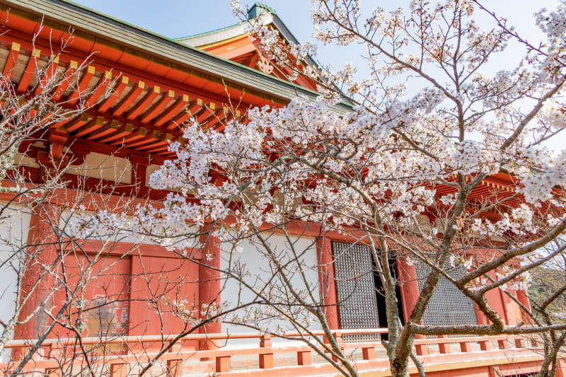 歴史ある桜の名所を訪ねたいなら、1300年以上前に創建された『太山寺』に足を運んでみて。神戸市西区にある由緒あるお寺で、周囲は豊かな自然に包まれています。神戸唯一の国宝建造物である朱塗りの本堂には、唐様の要素が取り入れられ、外から眺めるだけでも圧巻!
